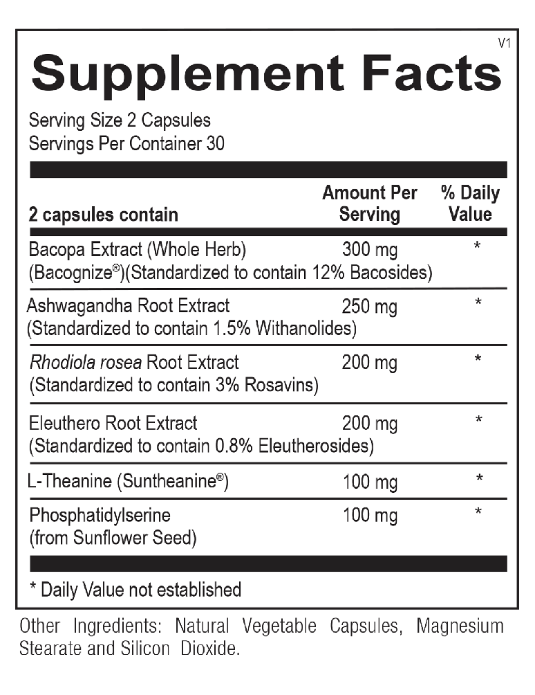 NuAdapt contains a nootropic and a blend of adaptogenic botanicals and nutrients specifically formulated to counteract the effects of daily stress, improve mental performance, and support healthy energy levels.